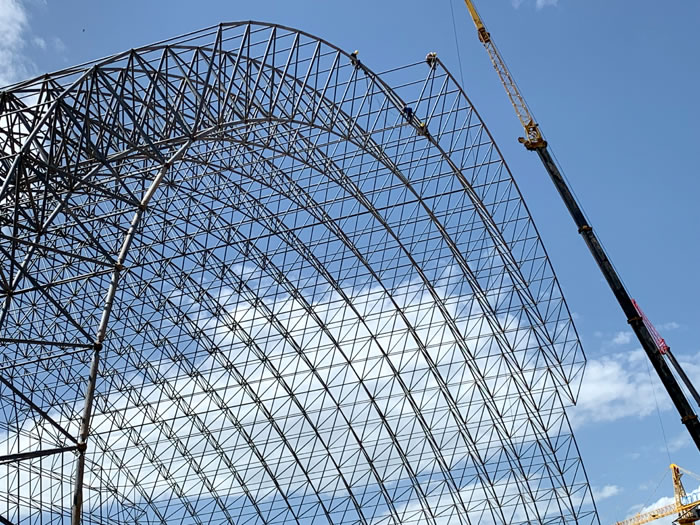 (2)网架加工前应对现场尺寸进行复测,确认无误后方可进行加工、安装;网架制作、运输、安装应遵守《空间网格结构技术规程》JGJ7-2010、《钢网架河北螺栓球节点》JG/T 10-2009、《钢网架河北螺栓球节点用高强度螺栓》 GB/T 16939-2016、《河北钢结构河北工程河北施工规范》 GB50755-2012、《河北钢结构河北工程施工质量验收标准》 GB50205-2020。